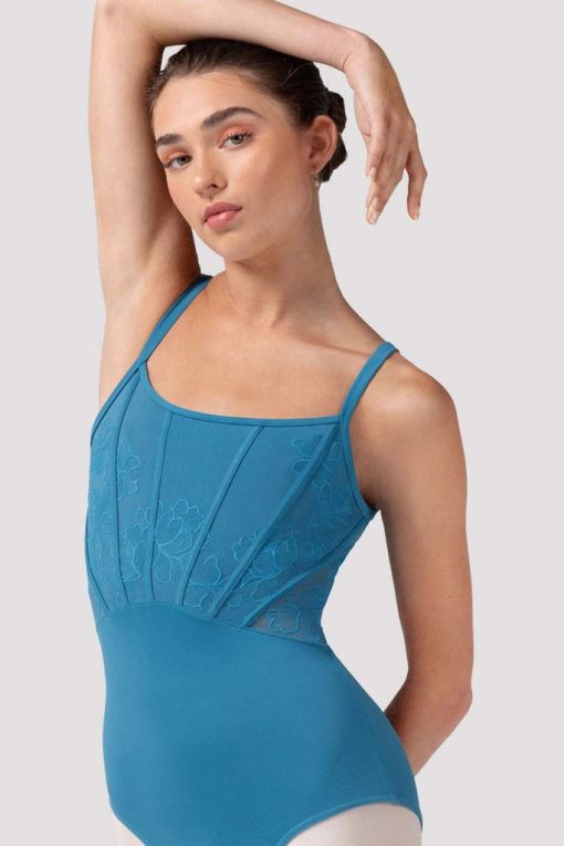 Bloch Women’s Dancewear Ladies Mia Floral Mesh Back Leotard | Cerulean