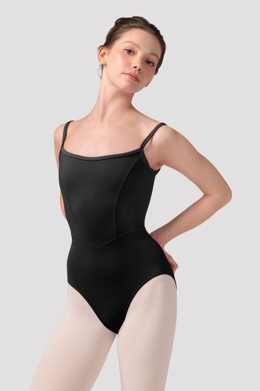Our Ladies Mirella Zephyr Low Back Leotard features a princess seamed bodice to flow effortlessly with each movement, a striking soft mesh low back with delicate striped camisole straps. Step into the magic of Zephyr, our extraordinary Mirella collection where innovation meets elegance. Zephyr's unique fabric comes to