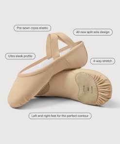 Introducing Elation, Bloch's new ballet shoe that sets a new standard for precision and comfort. Crafted with an asymmetrical design for a perfect fit, Elation features a 4-way stretch fabric in the arch, ensuring fit and flexibility for flawless arch support. The combination of innovative stretch lining and premium st